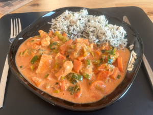 Hráefni Undirbúningur Kjúklingur Kókoshnetusósa Salat Hrísgrjón Yfirstráningur Aðferð Kjúklingur Kókoshnetusósa Salat Grjón